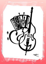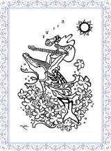 クジラがエレキギターを弾き、貝のアンプから音楽が流れる