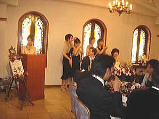 式の途中で絵の紹介をして頂き、ご両親やご親族の方、ご友人の方にも喜んで頂けたようで、